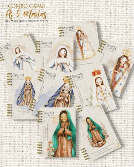 10 modelos de capas com texto AGENDA 2027 e frase A5 decorados com as 5 Marias em PDF e JPG