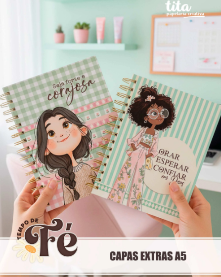 - Acompanha letreiros com nomes agenda, caderno de orações, para você adicionar nas capas.