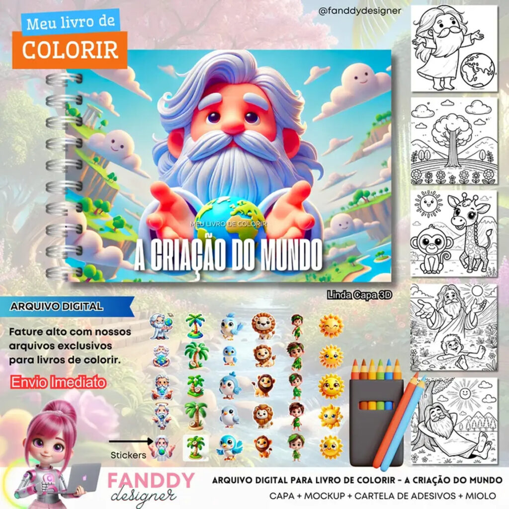 Kit completo para você criar um lindo livro de colorir. Pode ser encadernado ou impresso em folhas soltas.