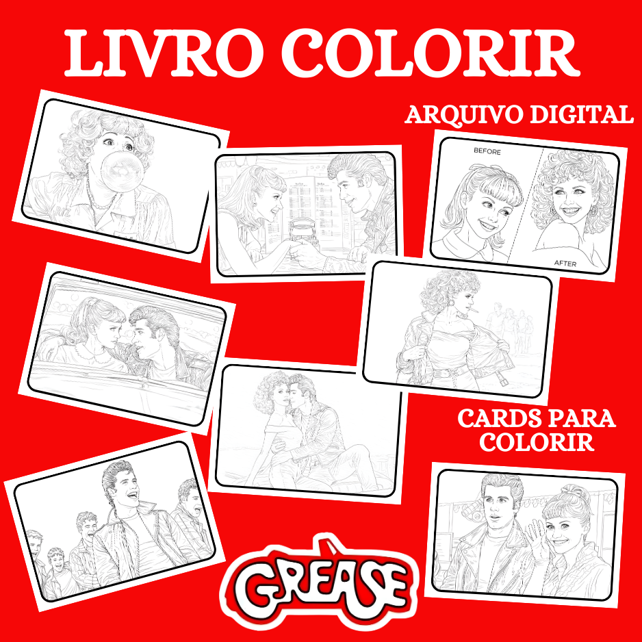LIVRO COLORIR GREÀSE NOS TEMPOS DA BRILHANTINA