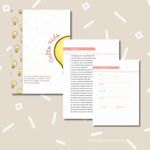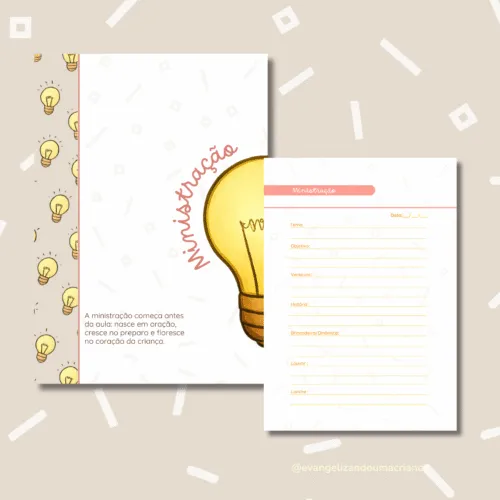 Pensado para líderes do Ministério Infantil, o Planner 2026 traz leveza, organização e propósito para o seu ano. Cada página inspira e facilita o seu serviço, ajudando você a brilhar como luz na vida das crianças.
