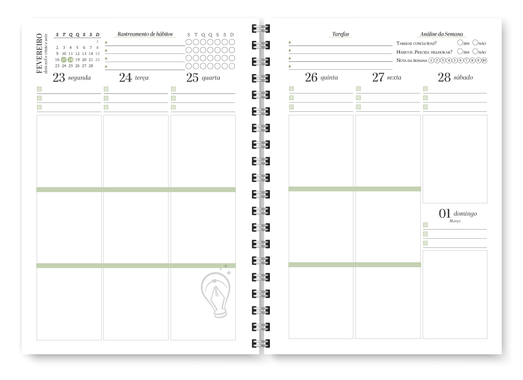 - Visão semanal em duas página