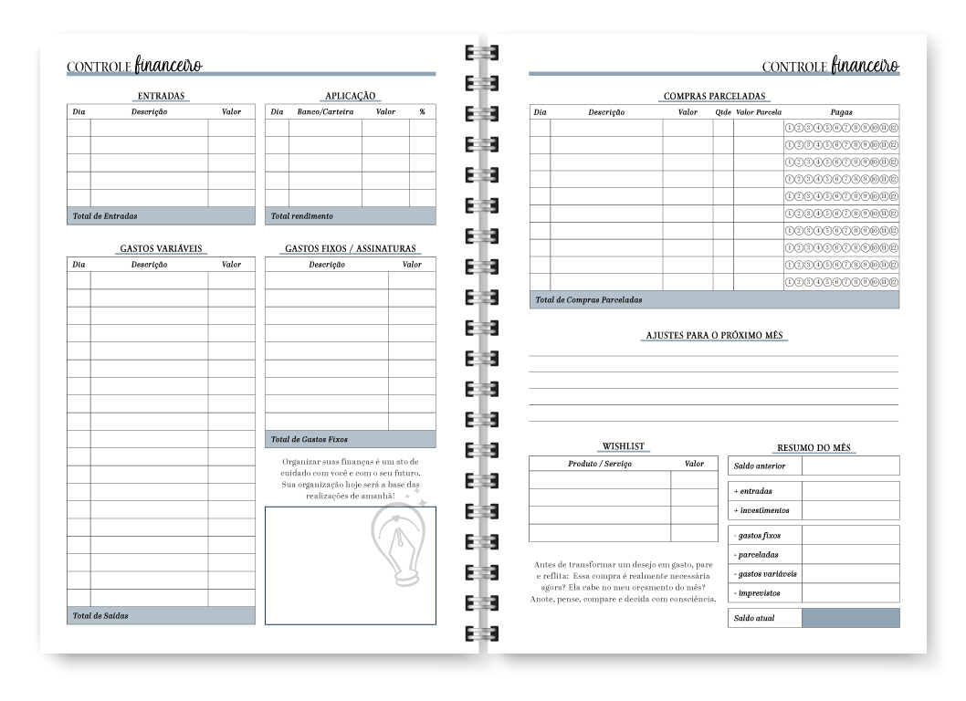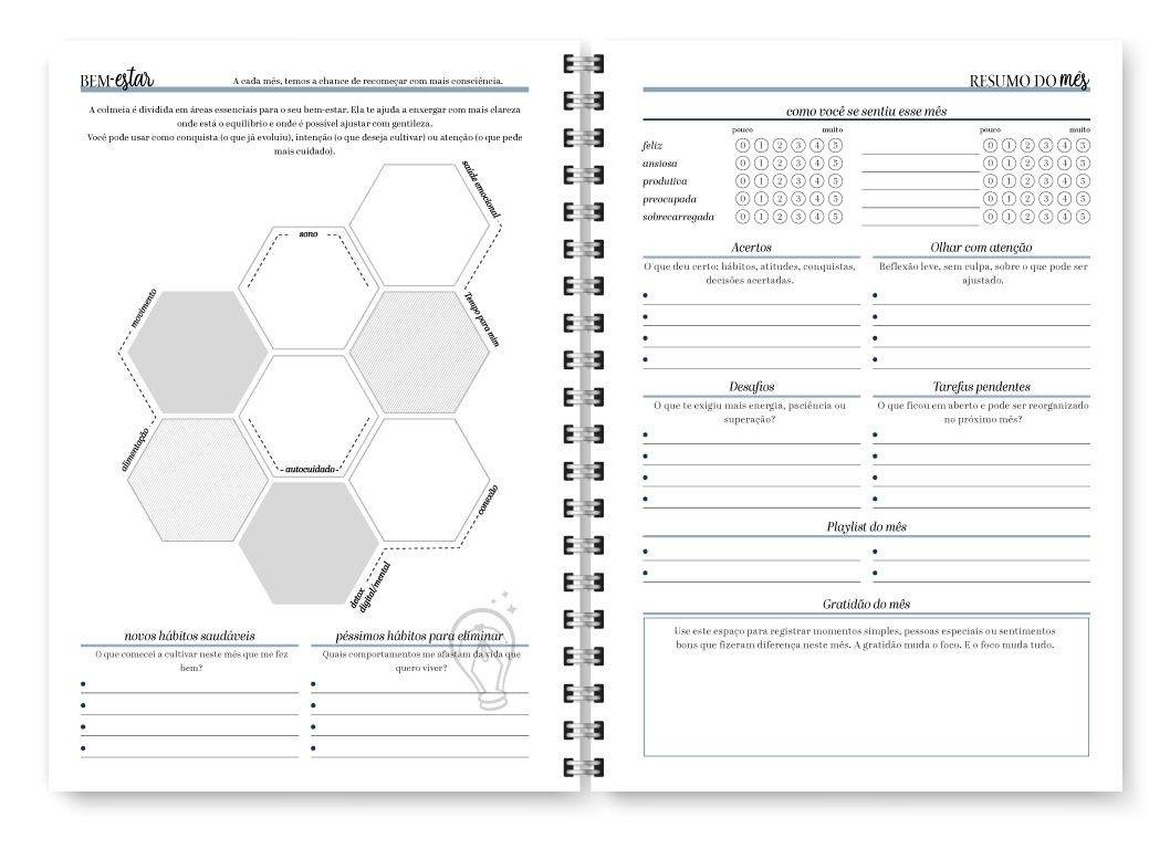 - Visão mensal em duas páginas