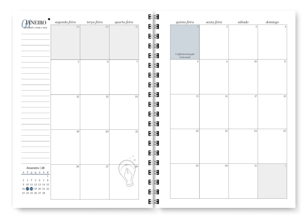 Miolo digital – Planner Neutro 2026