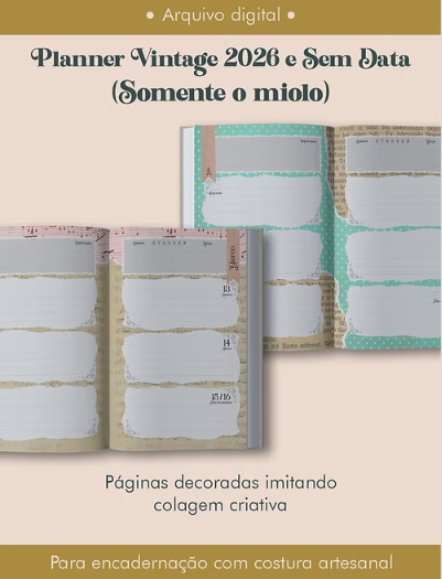 - Arquivo Digital Planner Vintage 2026 e sem data para Costura