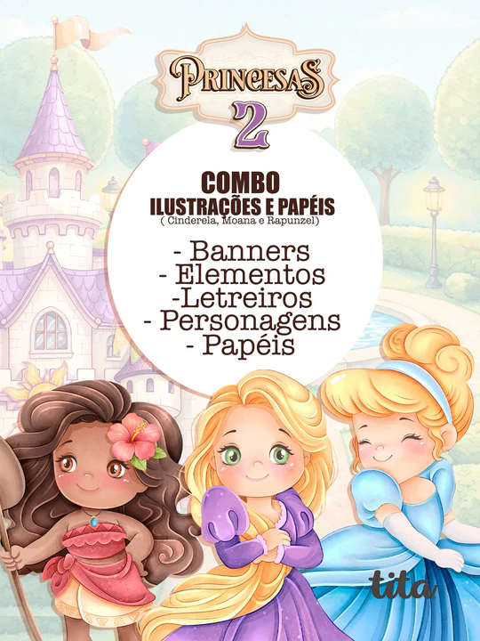 >>> Princesas desse pacote: CINDERELA, MOANA E RAPUNZEL.