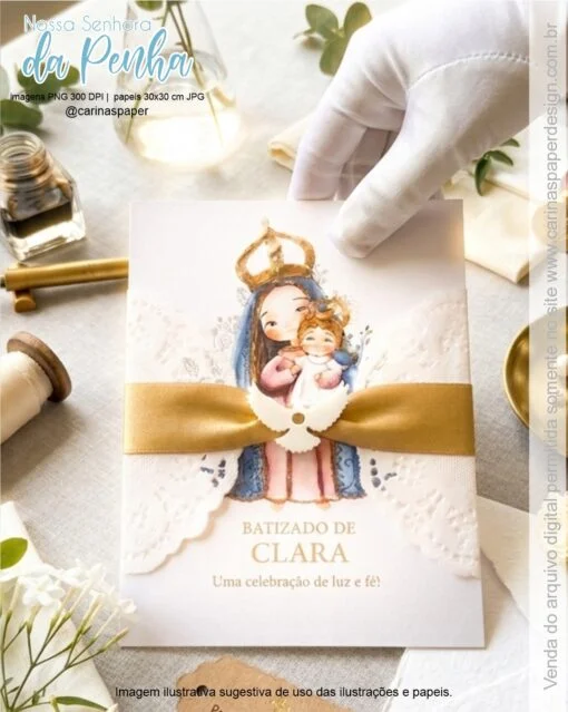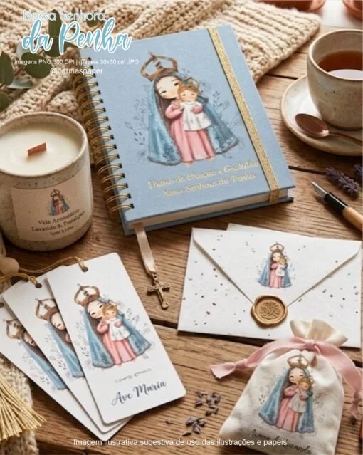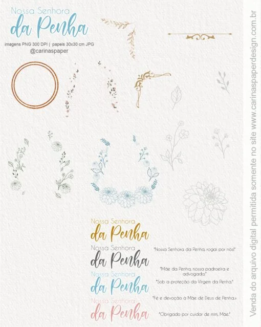 • 43 Ilustrações exclusivas de Nossa Senhora da Penha em estilo delicado e inspirador (formato PNG) entre variações, florais e textos