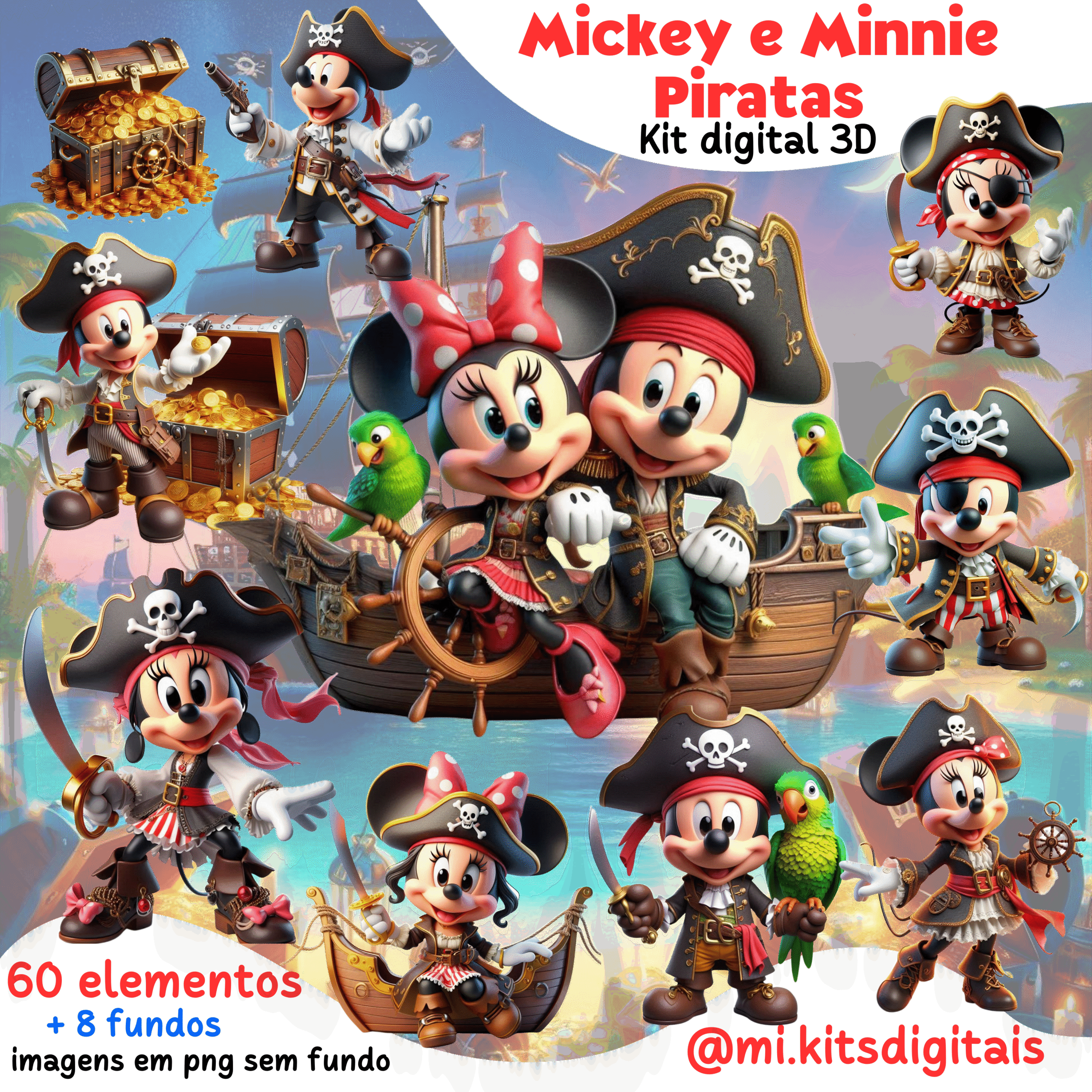 KIT DIGITAL Mickey e Minnie Piratas