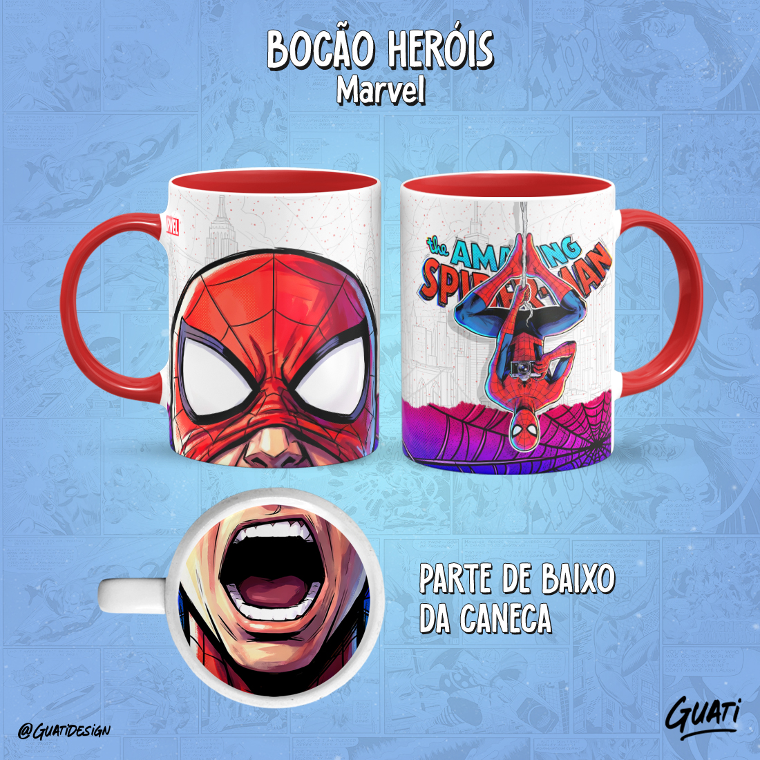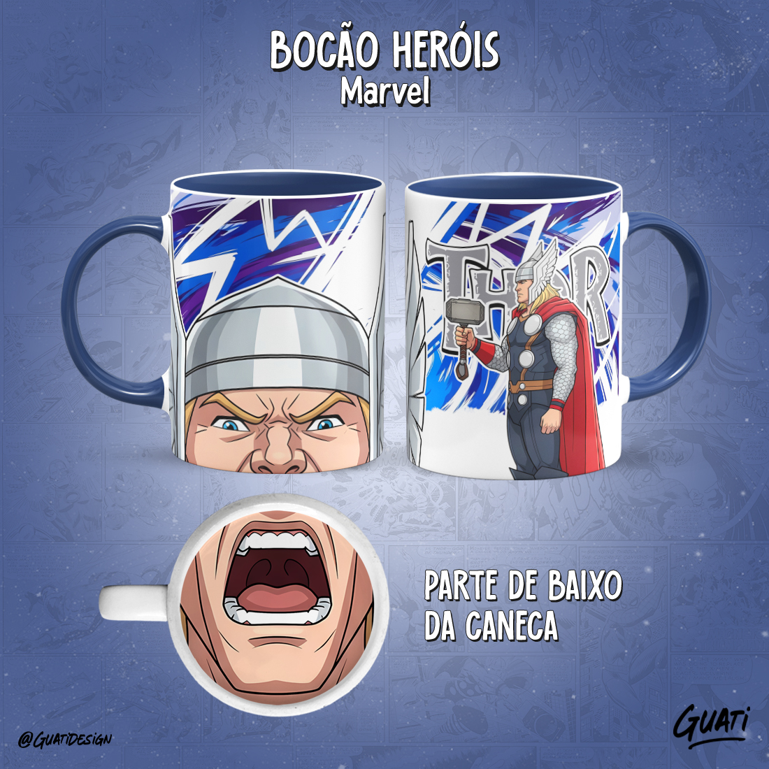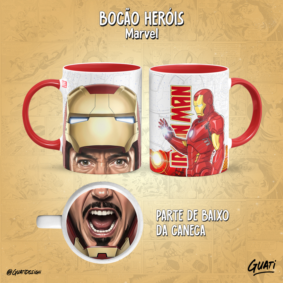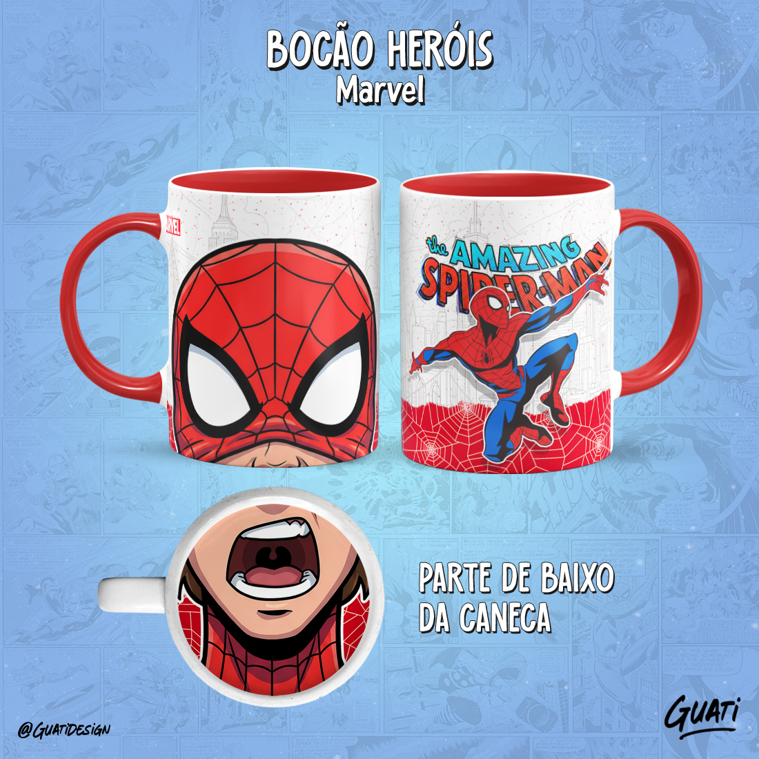 Arte Canecas Bocão Heróis Marvel