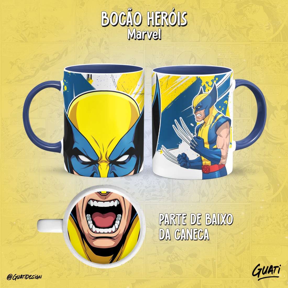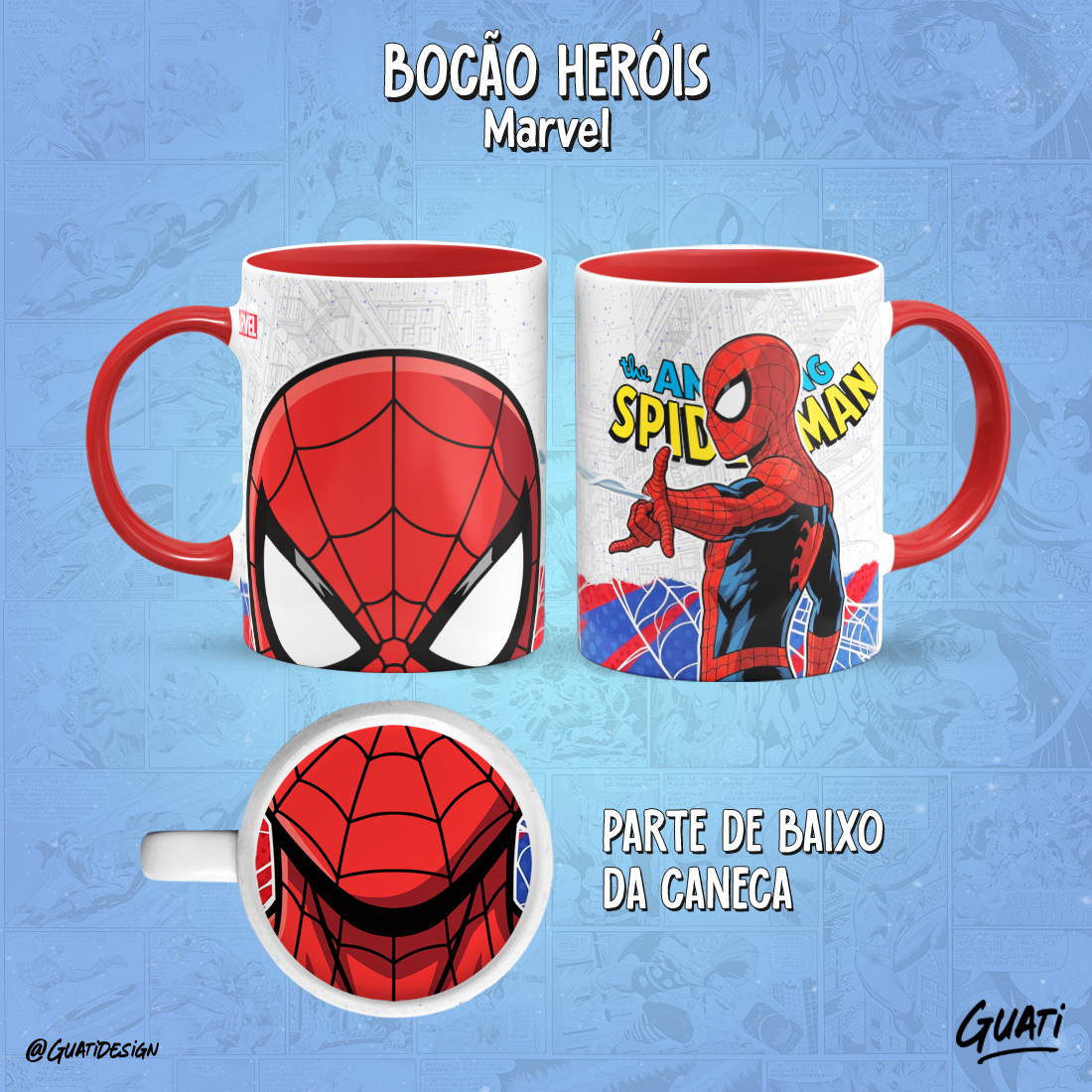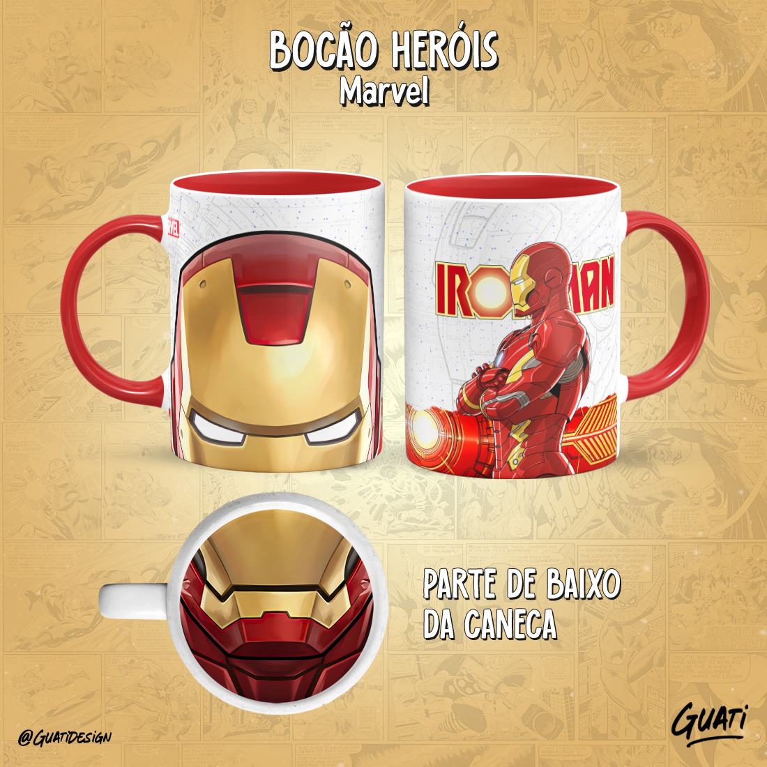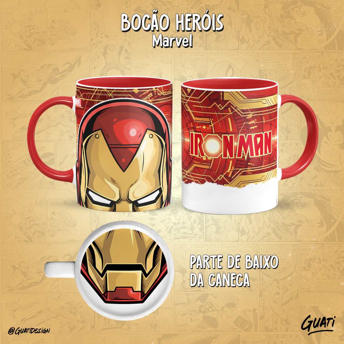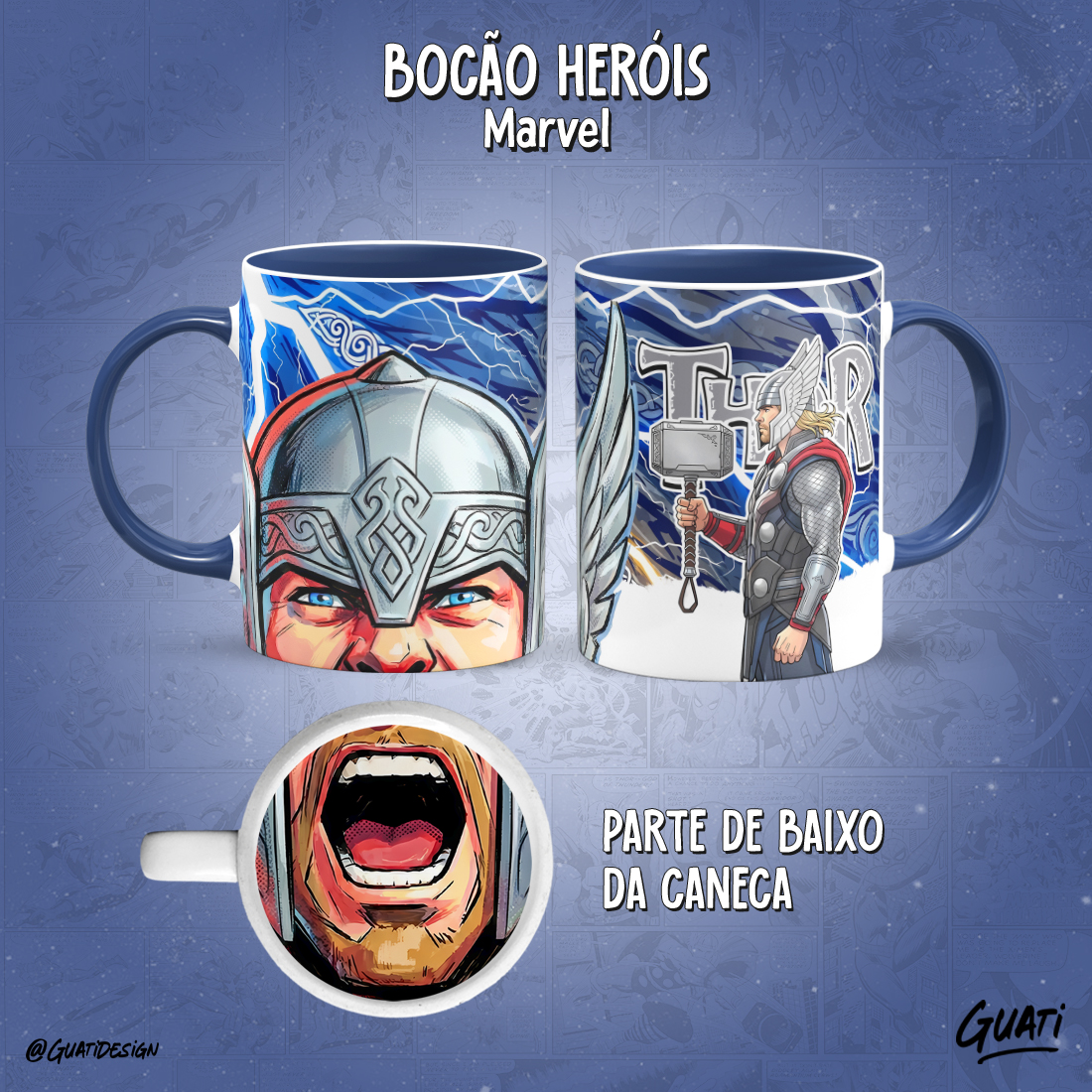 Arte Canecas Bocão Heróis Marvel