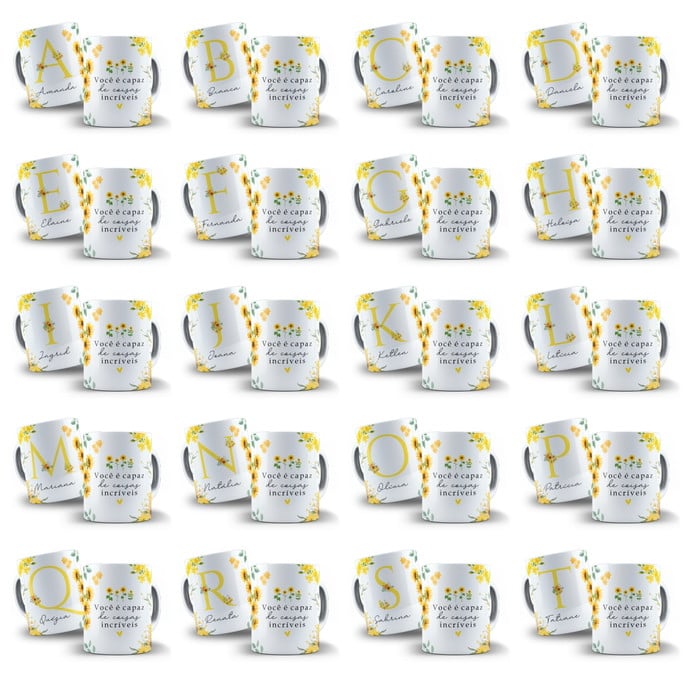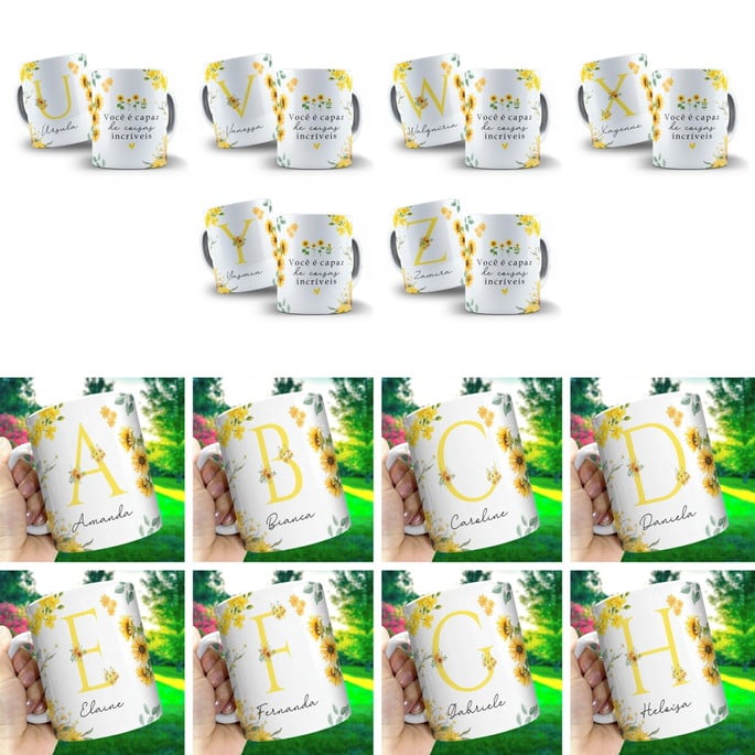 Arte Digital para Caneca Alfabeto Floral Girassol