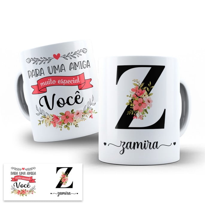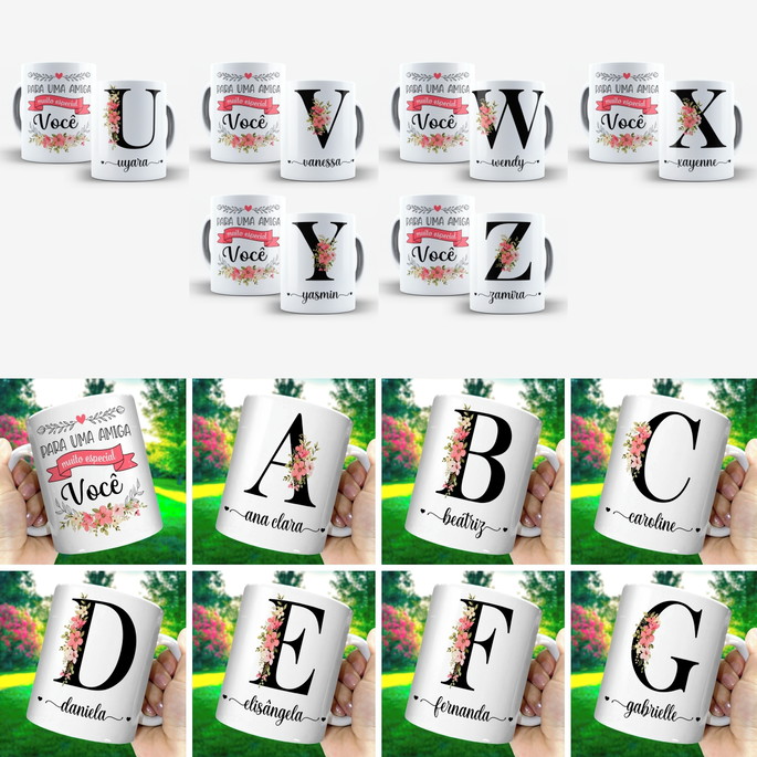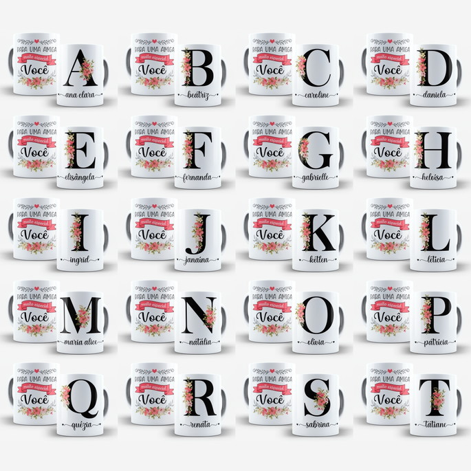 Arte Digital para Caneca Amigas Alfabeto Floral