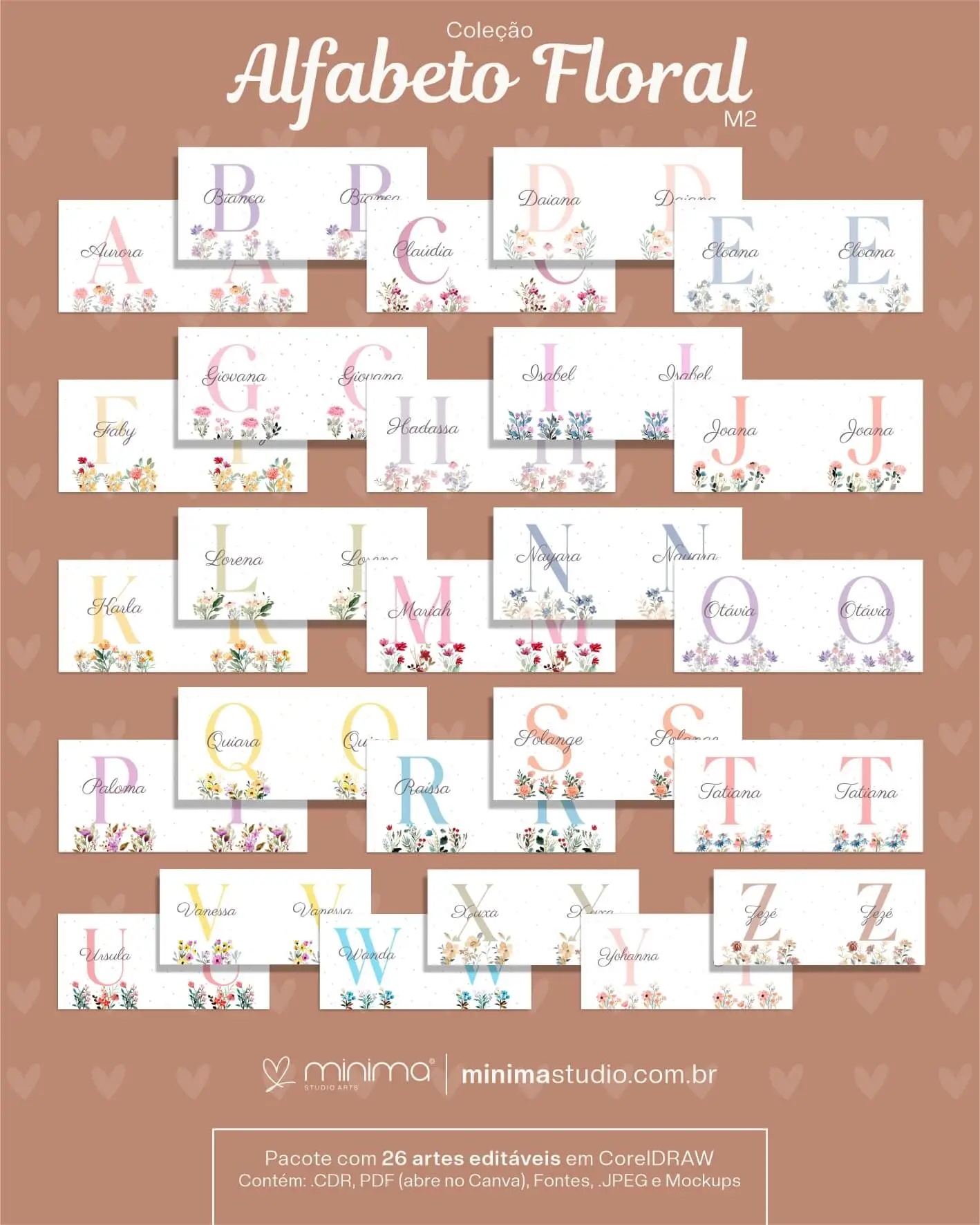 Pacote de Artes Canecas Alfabeto Floral M2