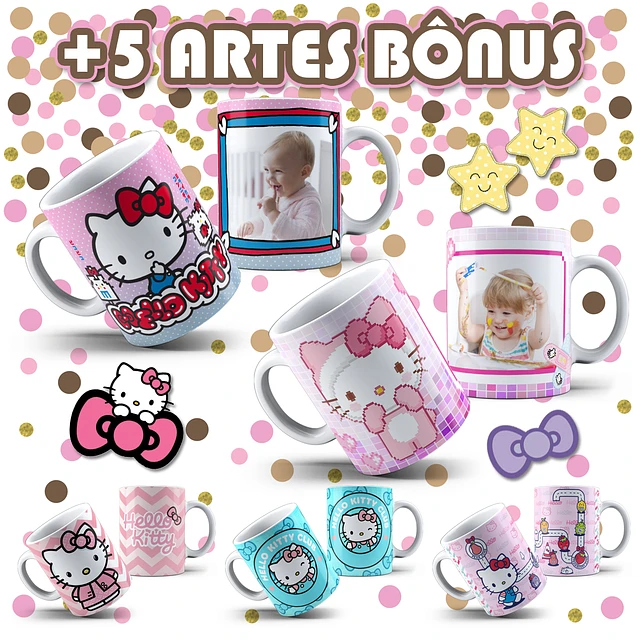 Pacotinho de Artes Hello Kitty para Sublimação de Canecas